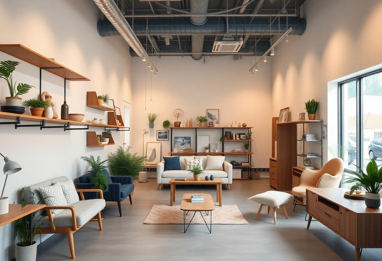 Oggetti vintage e riutilizzati possono diventare un elemento distintivo del tuo showroom, aggiungendo carattere e storia. Scegli mobili d’epoca, come tavoli e sedie, che riportano un certo fascino nostalgico. Integrare questi pezzi non solo ti permette di risparmiare, ma crea anche un ambiente unico che comunica una riprogettazione sostenibile.